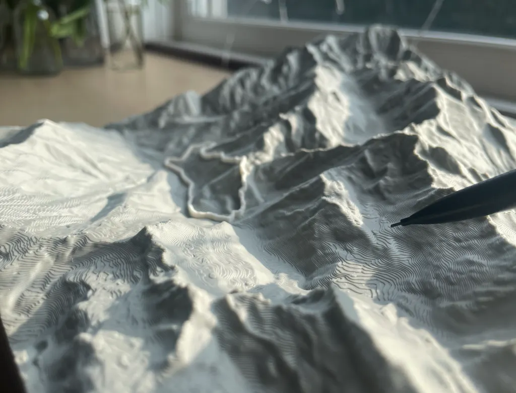 Dein GPX-Track – präzise modelliert auf echten Höhendaten. Ob Solo-Abenteuer oder gemeinsame Tour – Dein Weg wird detailgetreu ins Relief gedruckt.