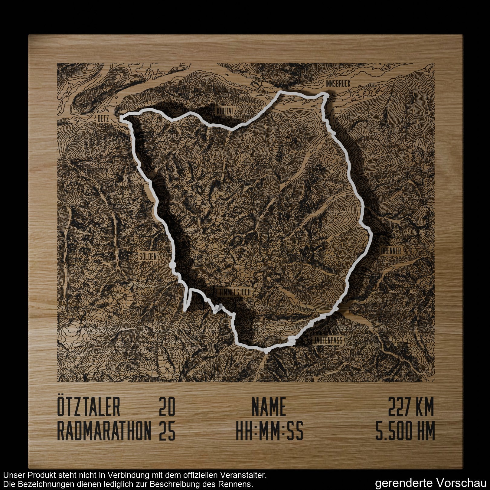 We transform your route into a sophisticated design piece: meticulously engraved, individually modeled, and crafted from sustainable wood. Whether it's elevation gain on a trail run or a personal best on a marathon course – your route becomes a work of art.
