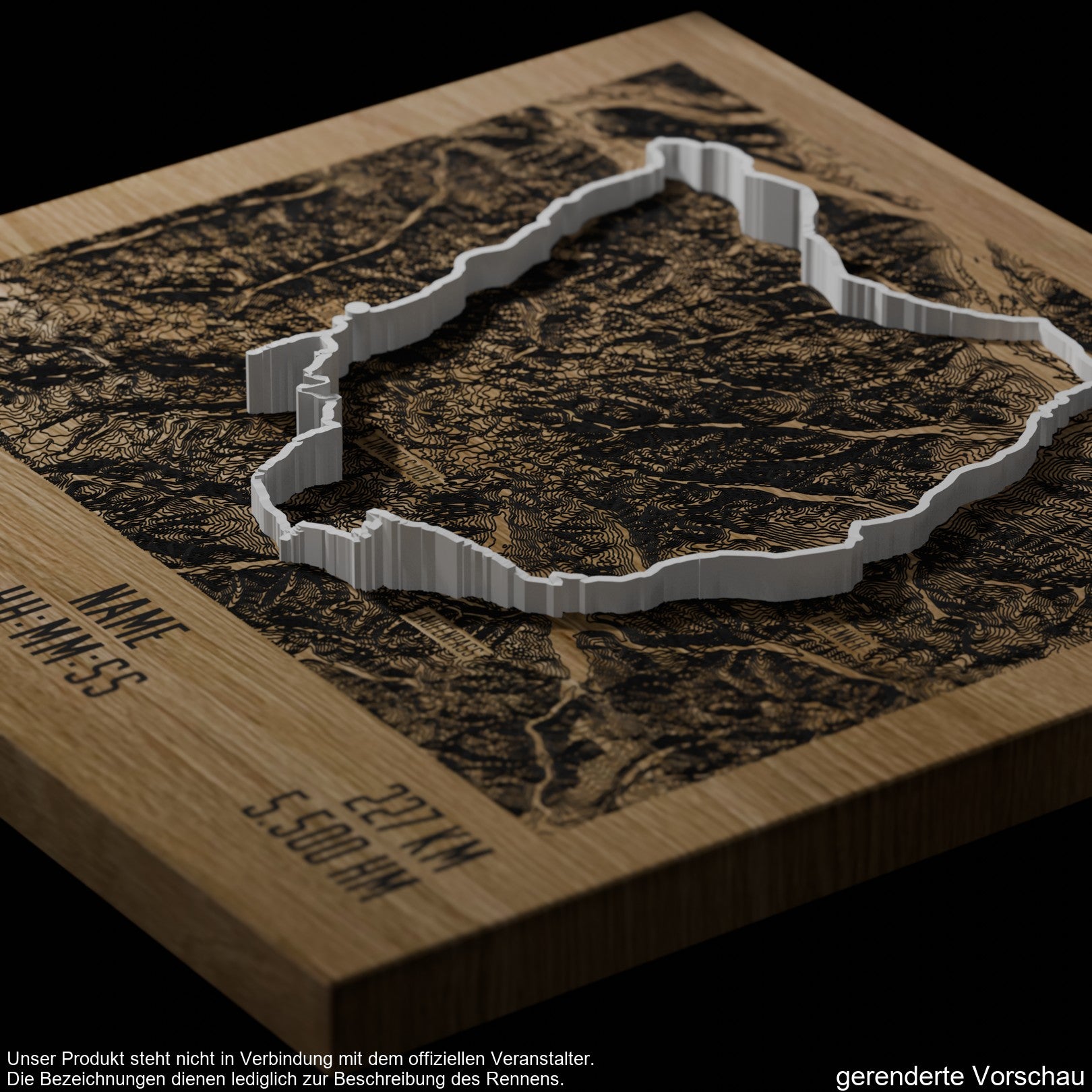 Each TrailMap is crafted with care , precision , and genuine craftsmanship in Ruhpolding, Chiemgau . From the individual modeling of your GPX track to the final engraving, a high-quality, unique piece is created here.
