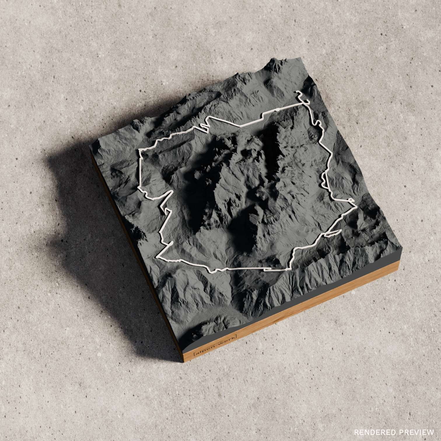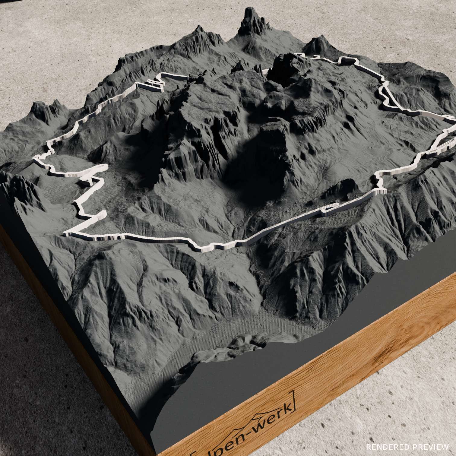 Each of our mountain reliefs is crafted with care, precision, and genuine handwork in Ruhpolding in the Chiemgau region. From modeling to final finishing, a high-quality unique piece is created here.